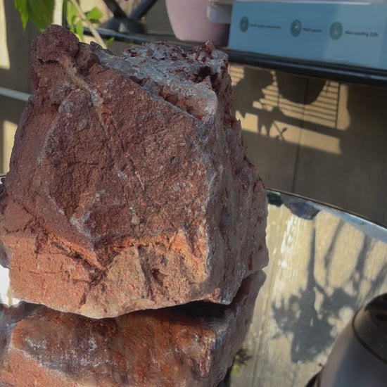 Hematoid quartz is also known as red quartz, it gets its red color from iron oxides like hematite or limonite. I believe this one comes from Morocco!