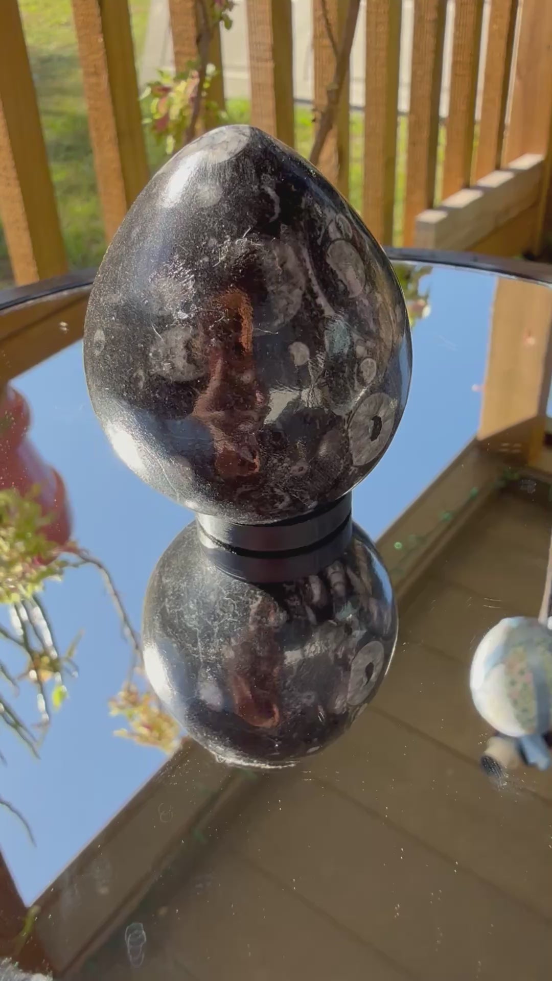 This Orthoceras egg is a fossil from the ancient times of the Ordovician Period to the Triassic Period, over 500 - 200 million years ago. These are extinct nautiloid cephalopod, also in the squid and octopus family.